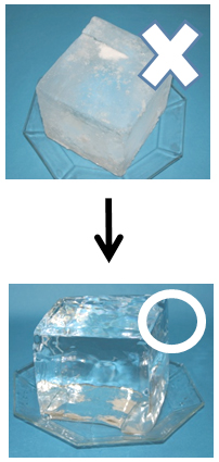 冷凍庫から出してすぐの氷は、表面が白くて硬すぎます・・・