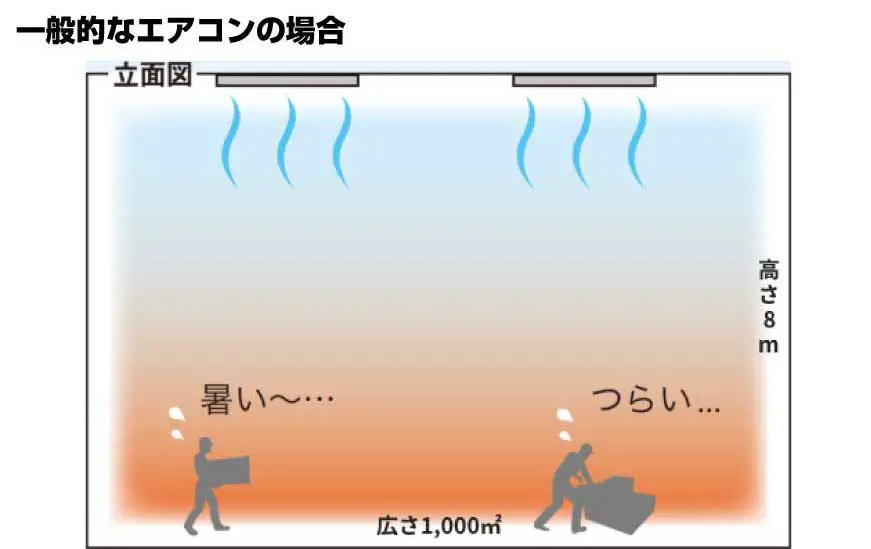 JIS規格に基づいて算出した信頼性の高い数値です。他社製大型スポットエアコンについて、