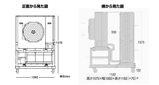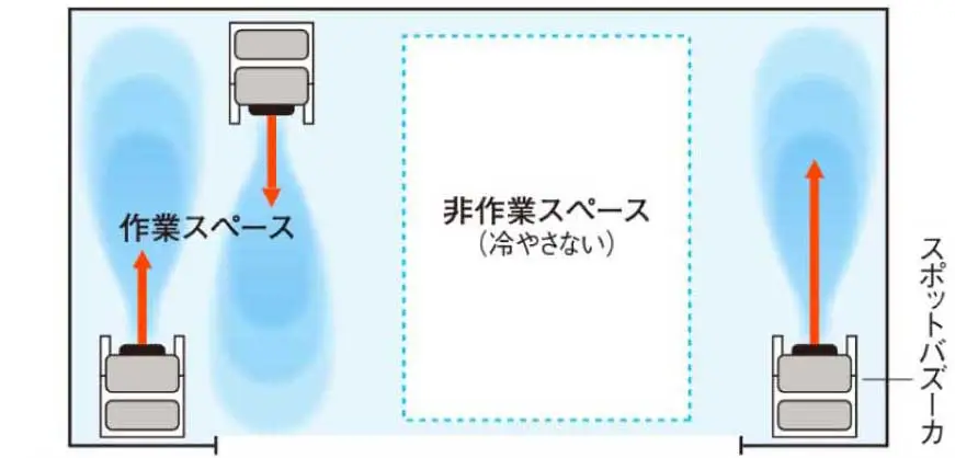 ※大型スポットエアコンバズーカは国内製造で安心のイーズ製です。風量・その他数値はJIS規格に基づいて算出した信頼性の高い数値です。他社製大型スポットエアコンについて、自社に有利で不適切な風量数値を記載していた例もございますのでご注意ください。