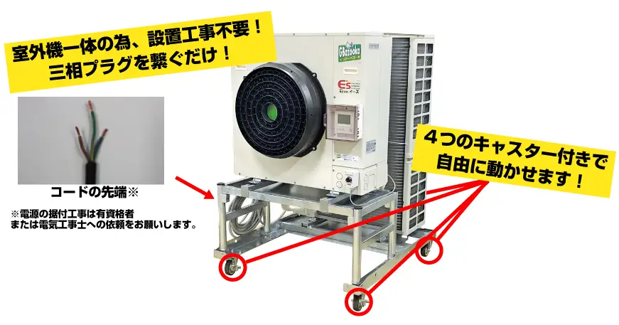 <三相200V>防水性能IPX4・雨ざらしOK 大型スポットエアコン【バズーカ】レンタル