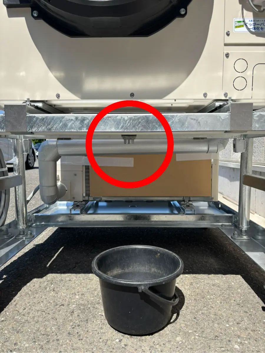 ホースのご用意が無くとも簡単にバケツで排水を行うことが出来ます。